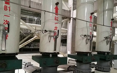 3、 旋風分離器—將氣粉混合物進行固氣分離,煤粉因重力作用被旋轉氣流甩到器壁,再靠重力作用落入積粉器。分離后的氣體沿中間路線上升頂部,從頂部出氣口排出,經射器抽氣器抽吸重新送入煤粉管道,實現煤粉和氣體的分離。